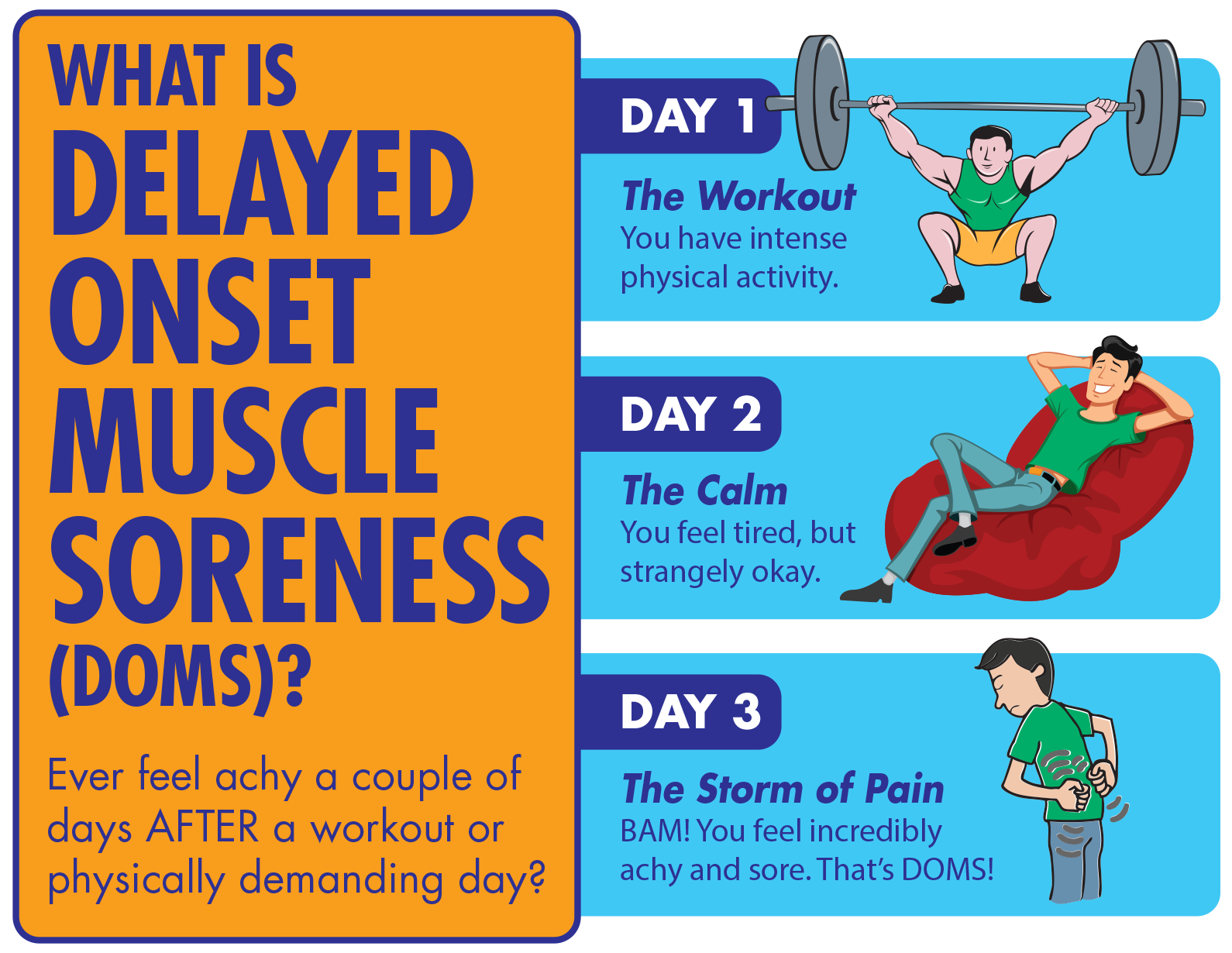 (DOMS) - Delayed Onset Muscle Soreness - Dịch nguyên văn là: Trì hoãn khởi phát đau nhức cơ bắp.