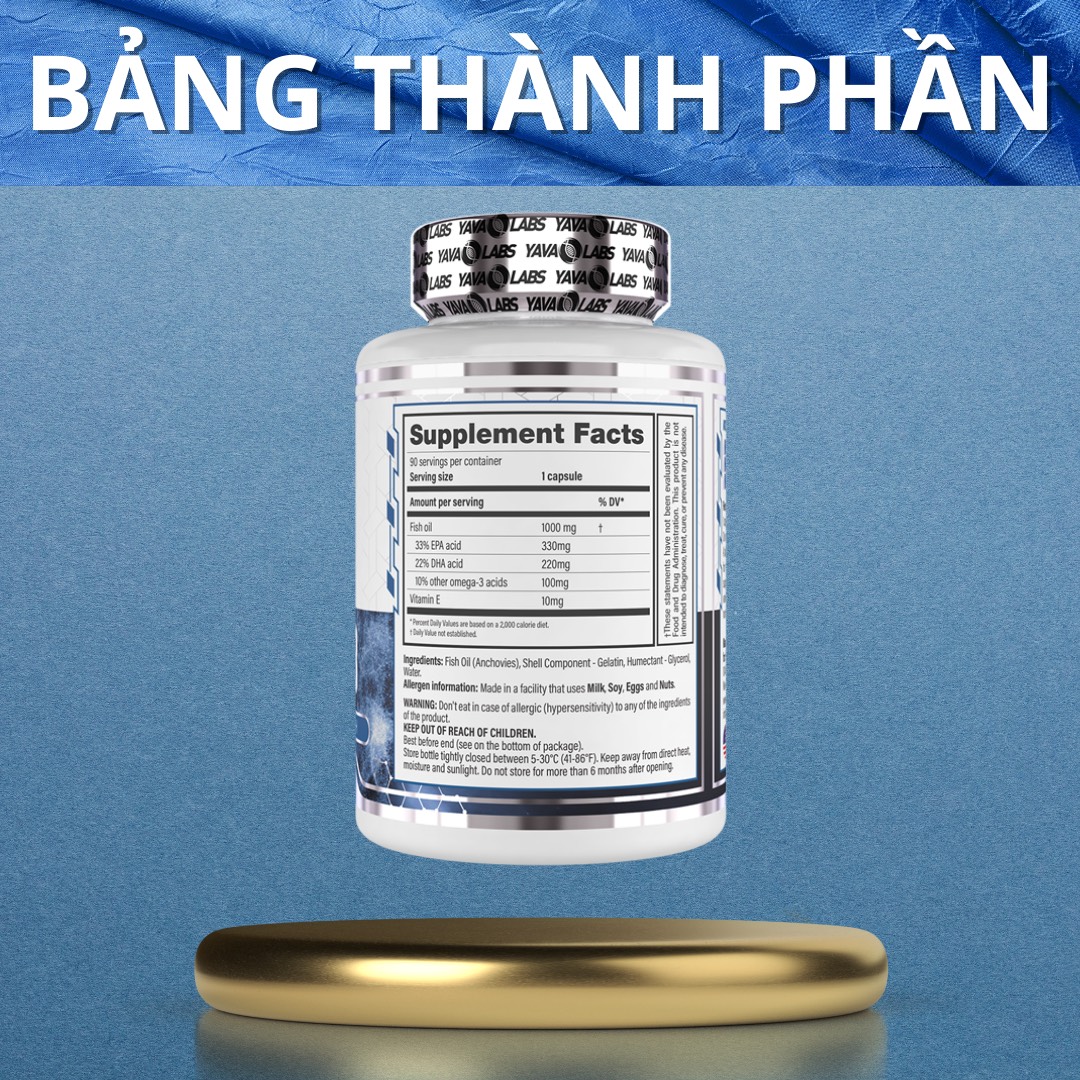 Omega-3 của Yava Labs là một nguồn axit béo không bão hòa thiết yếu. Đây là nguồn chính của axit docosahexaenoic (DHA), góp phần duy trì chức năng não bình thường và axit eicosapentaenoic (EPA), góp phần duy trì chức năng tim bình thường.